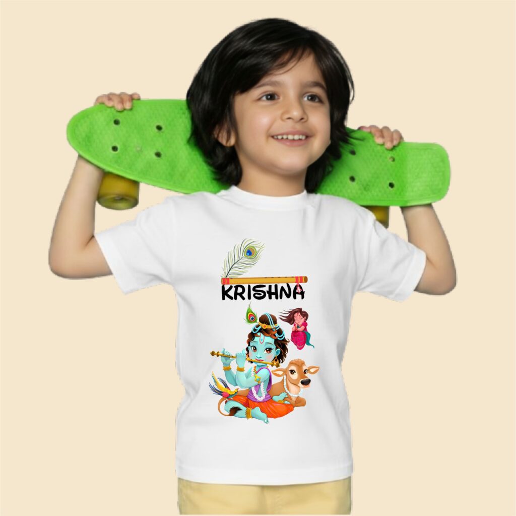 Radhe Krishna Printed Tshirt for Boys (Pack of 1)