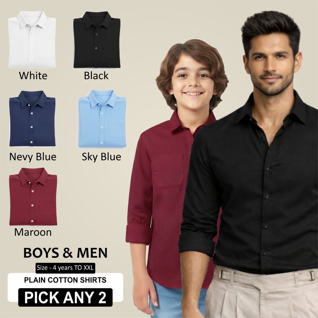 Pick Any 2 – Plain Cotton Shirts Combo for Boys & Men