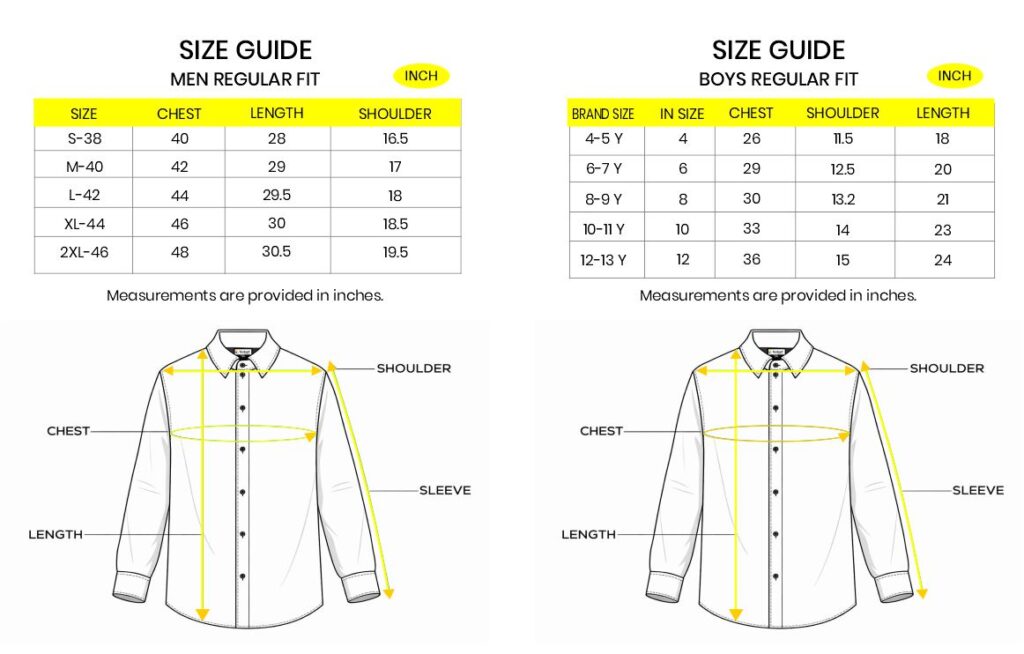 BOYS & MEN SIZE CHART